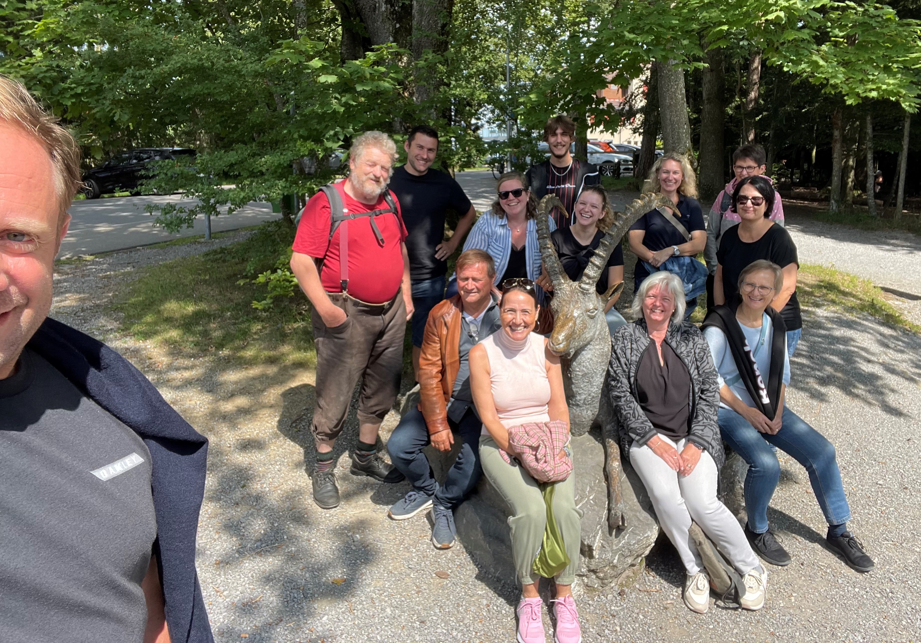 Am Donnerstag, 22. August 2024 begaben sich die Angestellten der Gemeindeverwaltung, des Werkhofes und des Zivilstandsamtes Vorderland AR (ZAVLAR) bei heissem Sommerwetter auf den Personalausflug, welcher seit drei Jahren als Teambildung durchgeführt wird. Die zwölf Mitarbeiter und der Gemeindepräsident trafen sich beim Bahnhof in St. Gallen. Mit dem Postauto ging es zum Friedhof Feldli, wo eine Führung durch das Krematorium auf uns wartete. Nach einer spannenden und vor allem nicht alltäglichen Besichtigung fuhren wir mit dem Bus an das östliche Ende der Stadt, ins Heiligkreuz. Das Mittagessen wurde nach einem kurzen Spaziergang im Restaurant "Peter & Paul" mit wunderschöner Aussicht auf den Bodensee serviert. Am Nachmittag, frisch gestärkt, nahm uns ein Mitarbeiter des Wildtierparkes "Peter & Paul" in Empfang. Seine fesselnden und humorvollen Erzählungen über die Entstehung des Wildtierparkes zogen alle in den Bann. So erfuhren wir u.a., dass es der Verdienst wagemutiger St. Galler Ortsbürger ist, dass die im Jahre 1906 ausgestorbenen Steinböcke in der Schweiz wieder angesiedelt werden konnten. Faszinierend vor allem, dass dies auf illegalem Weg durch einen Wilderer und Schmuggler glückte. Heute schätzt man den Bestand der Steinböcke in unserem Alpengebiet auf 17'000. Aber auch die vielen Geschichten über die Hirsche, Gämsen, Murmeltiere, Luchse, Rehe und Wildschweine liessen uns staunen. Zusammengefasst erlebten wir einen äusserst gemütlichen und auch sehr lehrreichen Tag, wofür wir uns herzlich bedanken.